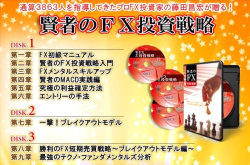賢者のFX投資戦略は、これまで通算3863人のFX投資家を育て上げたプロ投資家である藤田昌宏がお届けする究極の裁量トレード手法を3枚組のDVDにまとめた教材です。