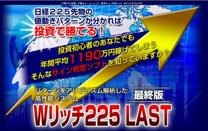 ⇒特典付き「Wリッチ225LAST 日経225先物サイン判定ソフト」の詳細はこちら!
