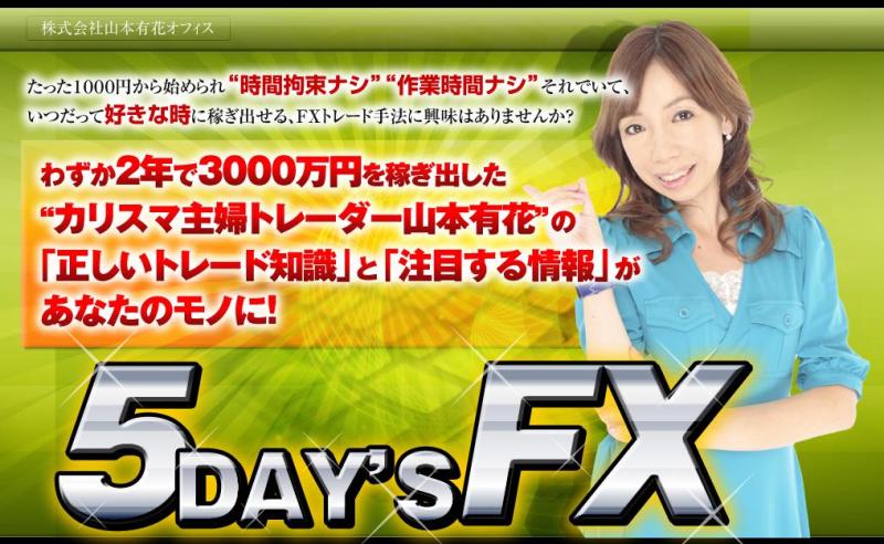 ⇒特典付き「山本有花が教える〜5DAY'S FX〜」の詳細はこちら!